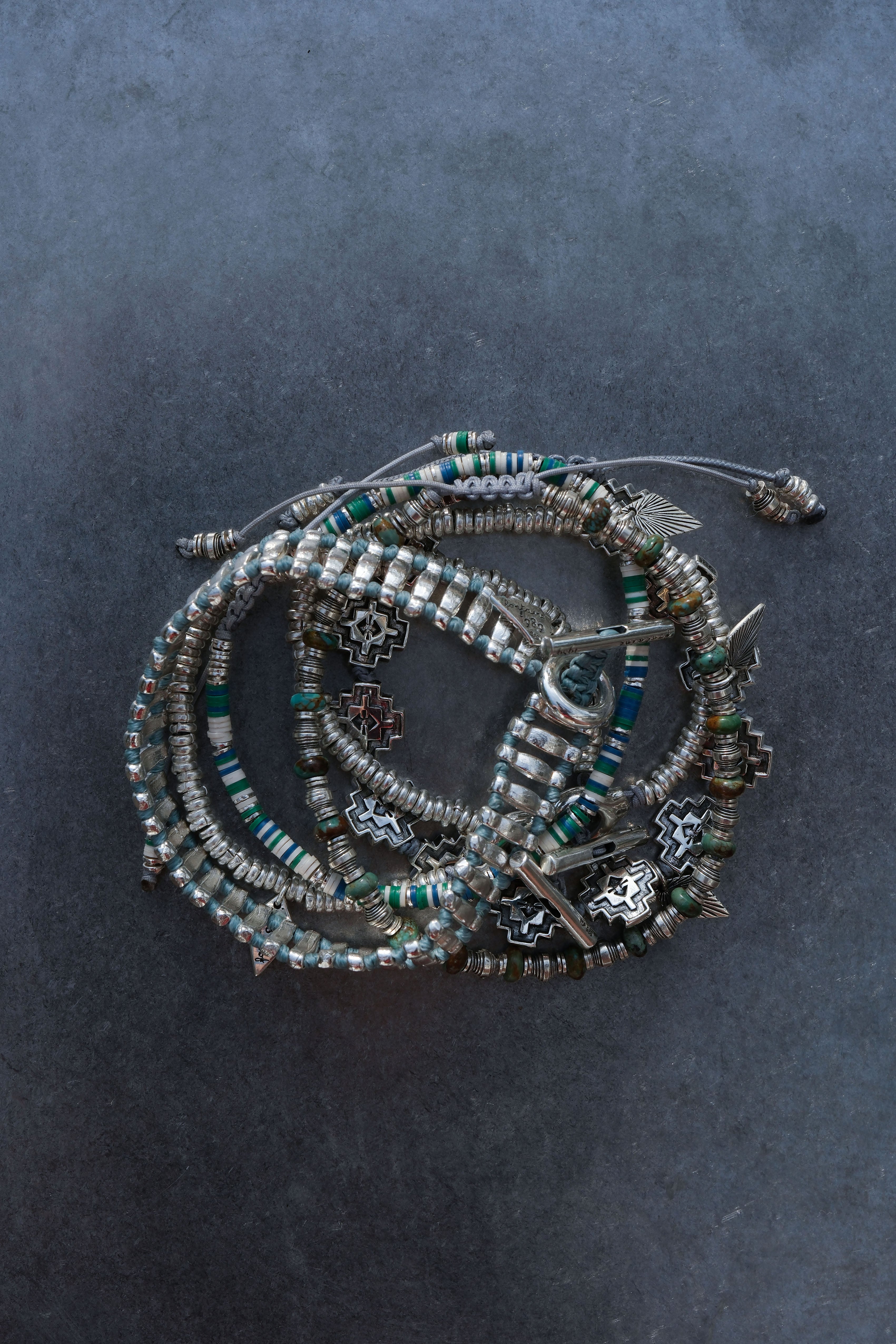 Un intemporel zébré noir et argent, sublimé par une petite turquoise, pierre fétiche du créateur.